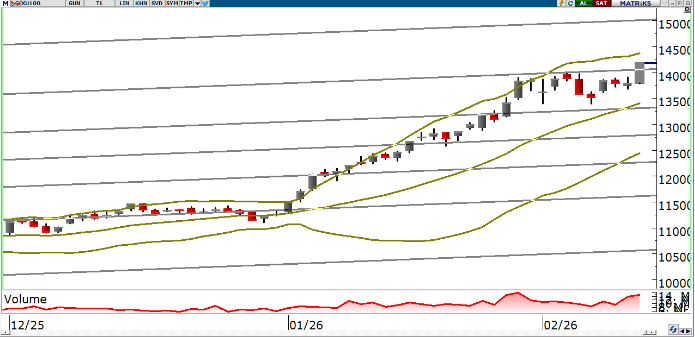 Endeks, dün gerçekleşen işlemlerde 392,66 puan yükselişle 14,180 puan seviyesinden kapanış gerçekleştirdi.