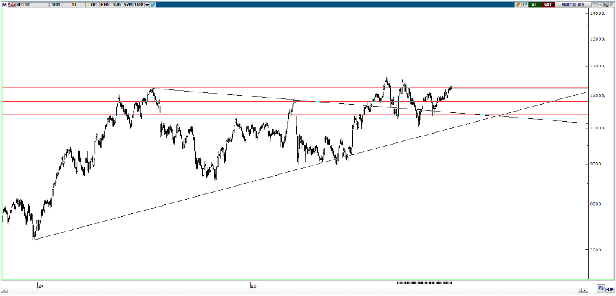 BIST100 Endeksi perşembe gününü %0,36 yükseliş ile 11.233 puandan kapattı. Endeks gün içinde 11.198-11.300 bandında hareket etti. Endeksin hacmi ise 134,90mlr TL gerçekleşti. Yukarı yönlü hareketlerde ilk etapta yatay direnç olan 11.255 seviyesi takip edilebilir. Hareketin devamı durumunda ise 11.580 seviyesi hedeflenebilir. Aşağı yönlü hareketlerde ilk etapta yatay destek olan 10.810 seviyesi takip edilebilir. Desteğin kırılması durumunda alçalan trendin desteği olan 10.475 seviyesi takip edilebilir. Hareketin devamı durumunda yatay destek olan 10.400 seviyesi izlenebilir.