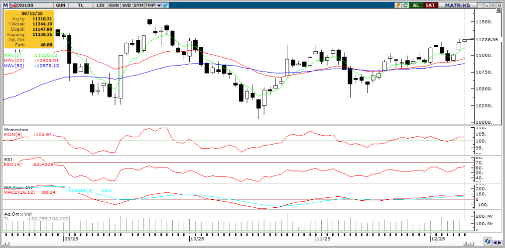 Momentum (trendin ivmesini gösterir): Momentum 102 seviyesinde kısa vadeli görünüm güçlü. Pozitif.