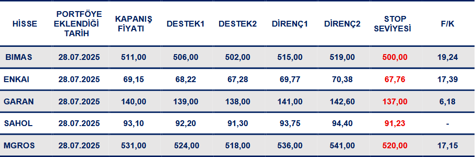 Acar Menkul – Kısa Vadeli Model Portföy / 28.07.2025