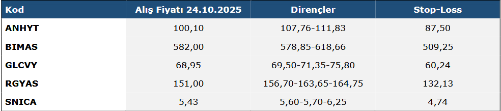 Piramit Menkul – Haftalık Model Portföy / 24-31 Ekim 2025