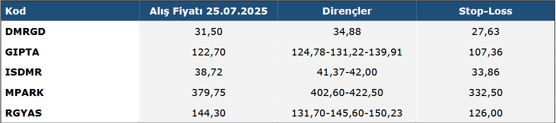 - Özet -HAFTALIK TEKNİK TAKİP LİSTESİ (25 TEMMUZ – 1 AĞUSTOS 2025)