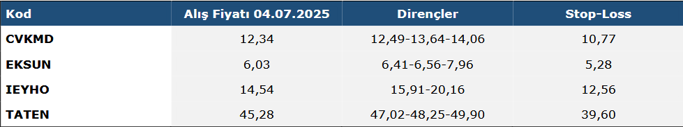 Piramit Menkul – Haftalık Model Portföy / 4-11 Temmuz 2025